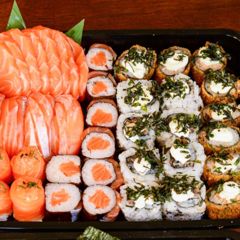 04 Sashimi Salmão 06 Jow Especiais do chefe 02 Hossomak 02 Uramak 02 Niguiri Salmão 04 Hot-Roll