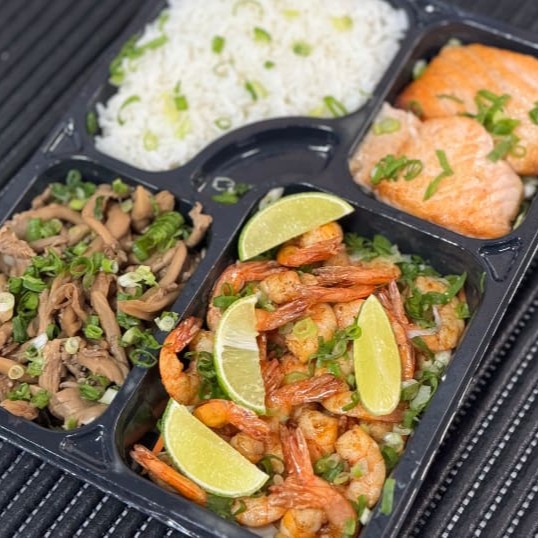 20 Unidades de Camarão no alho e óleo 02 Salmão Grelhado 01 Gohan 01 Shimeji