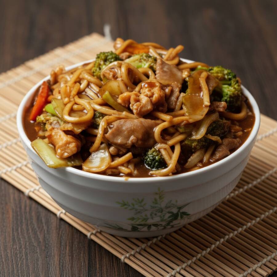 Peito de frango em cubos com batata e cebola e nosso molho exclusivo a base de shoyu. Acompanha gohan.