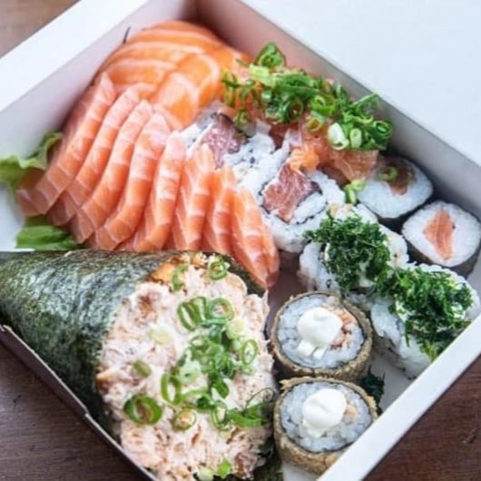 04 Sashimi Salmão 06 Jow Especiais do chefe 02 Hossomak 02 Uramak 02 Niguiri Salmão 04 Hot-Roll