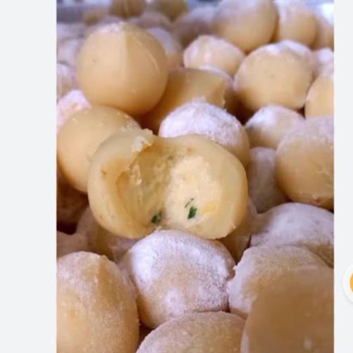 50 bolinhos de queijo tamanho Festa aprox. 20 a 25 grs. massa feita com batata muito macia e crocante por fora.. Tamanho Festa e maior que mini.