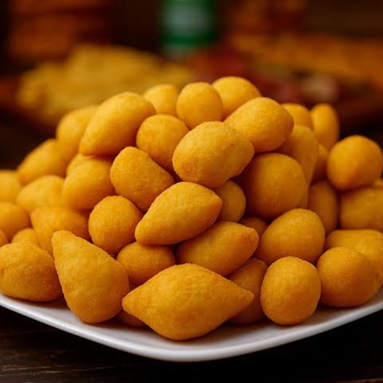 50 Bolinhos de Calabresa e Requeijão Festa de 20 a 25 grs com massa de batata macia por dentro e crocante por fora, impossível comer um só.
