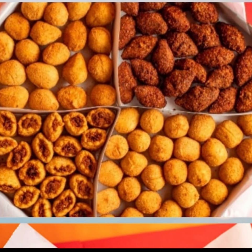 100 salgados sortidos feitos com massa de batata +10 churros recheado doce de leite +1litro de Guaraná antártica