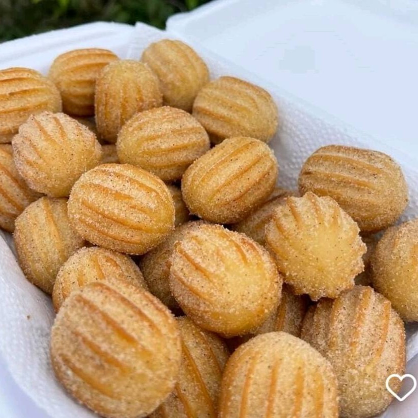 25 mini churros recheado com doce de leite e coberto com açúcar e canela