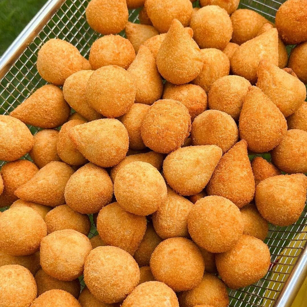 Promoção imperdível 100 Salgados sortidos 12 gramas sabores Coxinha Bolinha de queijo Enroladinho de queijo e queijo presunto e coxinha
