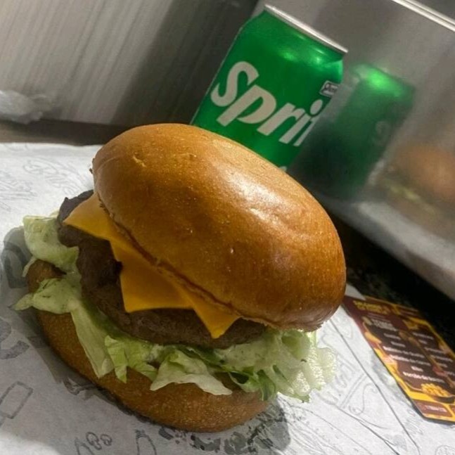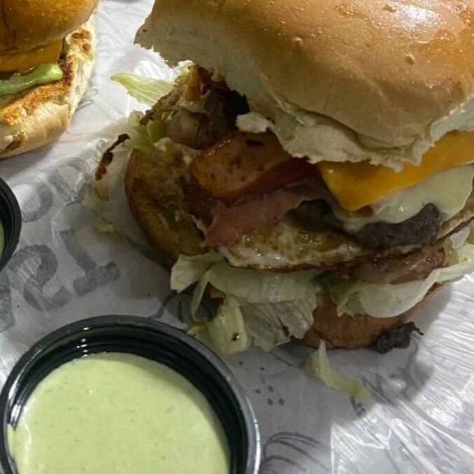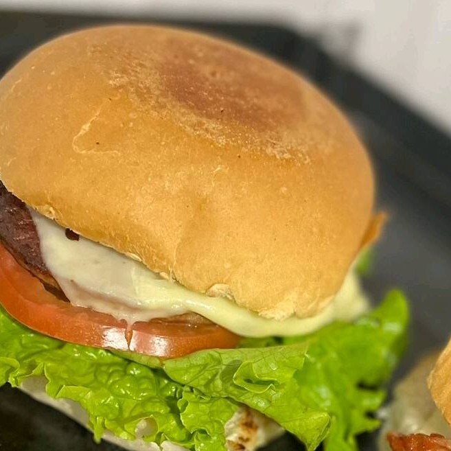 Pão brioche, molho verde especial, alface americano, queijo cheedar hambúrguer artesanal 150gr