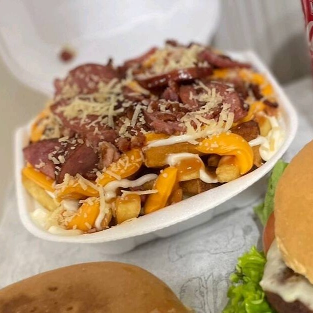 X salada, x burgues, cheedar ou x bacon 3 lanches + batata Recheada+ 10 salgados