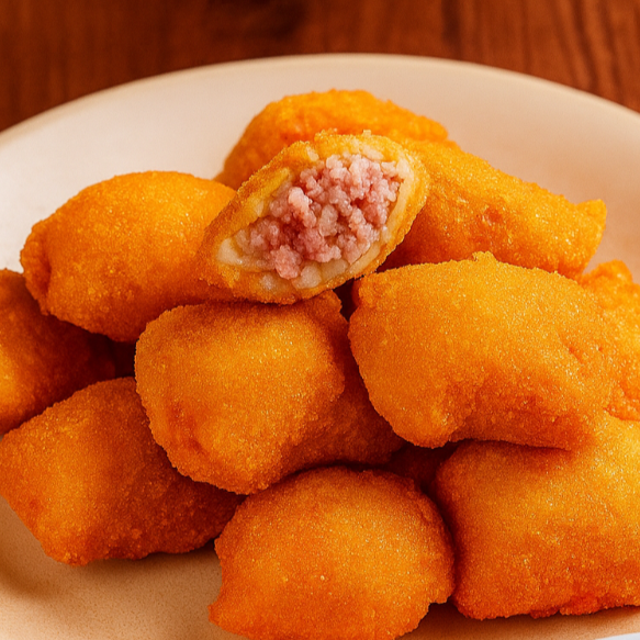 Delicie-se com os nossos Bolinho de carne, Tradicional com um toque sofisticado. Este pedido inclui 15 unidades desses salgados crocantes por fora e deliciosamente suculentos por dentro. Cada Bolinho de carne é cuidadosamente preparado e frito até a perfeição, garantindo o equilíbrio perfeito entre o exterior dourado e o interior macio e saboroso. Esse é um salgado irresistível, perfeito para comp