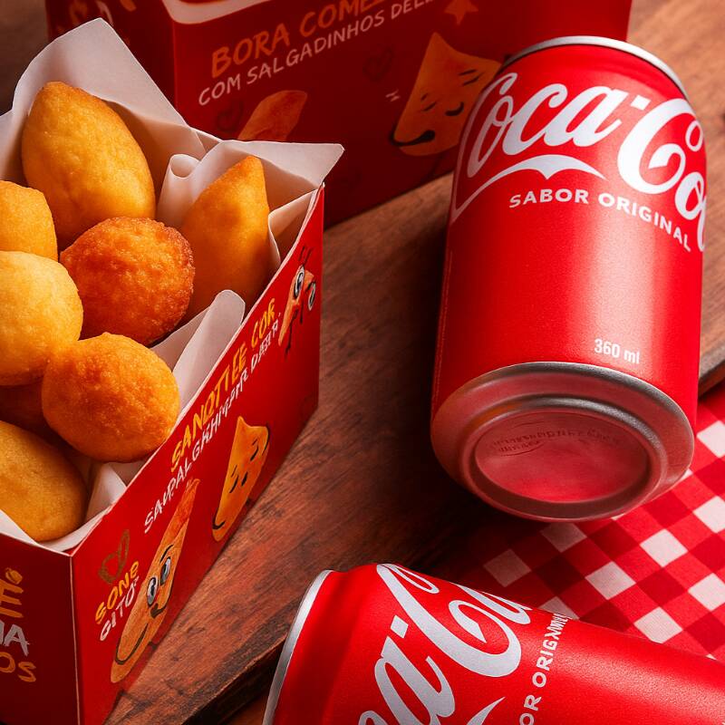 Apresentamos o Combo Individual composto por 15 salgados fritos, irresistivelmente saborosos e crocantes. Este combo une a perfeição dos salgados com a refrescância da Coca-Cola de 350ml, tornando-o a escolha ideal para qualquer momento do seu Dia, seja almoço, jantar ou até mesmo um lanche especial. Observação: Não realizamos alterações nos sabores e quantidades dos itens do combo.