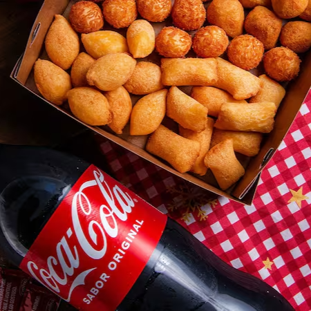 Delicie-se com nosso 'Combo Família', perfeito para partilhar momentos especiais. São 50 salgados fritos cuidadosamente selecionados, crocantes por fora e com um recheio irresistivelmente saboroso. Acompanha uma refrescante Coca-Cola de 2 litros, geladinha e pronta para aumentar sua experiência gastronômica. Uma combinação perfeita para momentos de alegria em família!