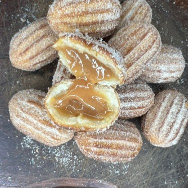 mini churros de chocolate 30gr cada UNIDADE. SÃO FRITOS NA HORA.