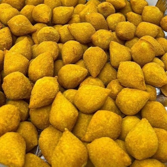 Mini Salgados Fritos, perfeitamente crocantes. Cuidadosamente preparados para garantir uma textura única, esses salgadinhos são a opção ideal para partilhar em eventos ou simplesmente para saborear sozinho. Sabores disponível Coxinha, Rissole de presunto e Bolinho de Queijo. Venha saborear nossos deliciosos salgados. Conheça alguns produtos que oferecemos como: Salgados, mini salgados Combos d