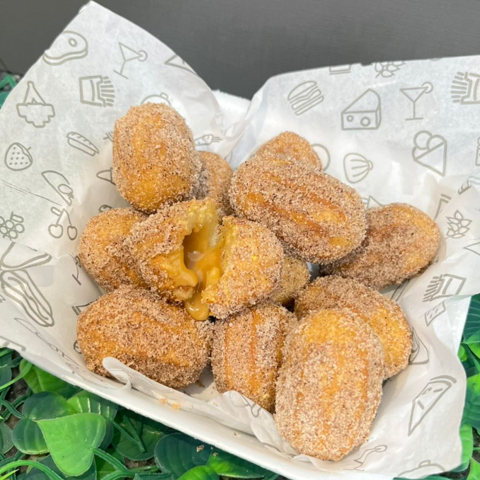 Mini churros de Doce de Leite irresistíveis, douradinhos por fora e macios por dentro! 😍✨ Feitos na hora, com massa leve e crocante, polvilhados com açúcar e canela na medida certa e recheados com muuuito doce de leite cremoso que derrete na boca. Cada mordida é uma explosão de sabor e aquele gostinho de quero mais! Perfeitos para matar a vontade de doce, compartilhar com a família ou deixar qualquer momento ainda mais especial. Peça agora e se apaixone pelo nosso mini churros! 💛
