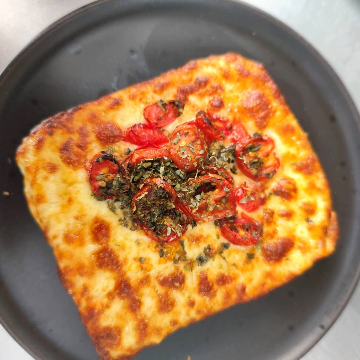 1 Fatia pão da casa , frango desfiado, mussarela, tomate e oregano . Tostado.