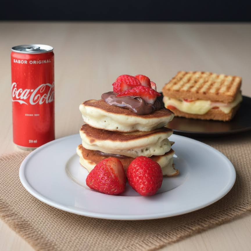 1 lata de coca cola 310ml 1 tostex presunto e queijo 1 panqueca americana Nutella