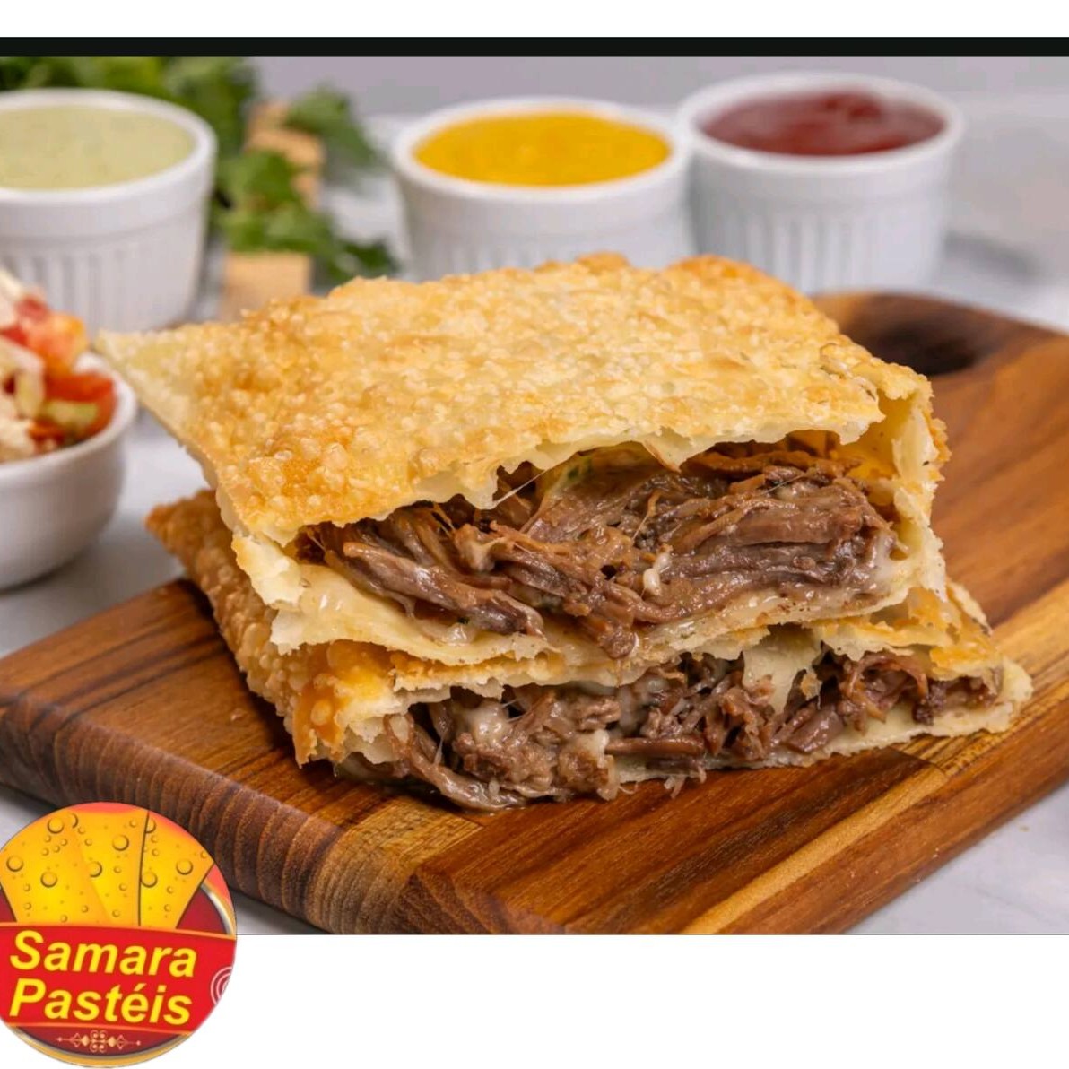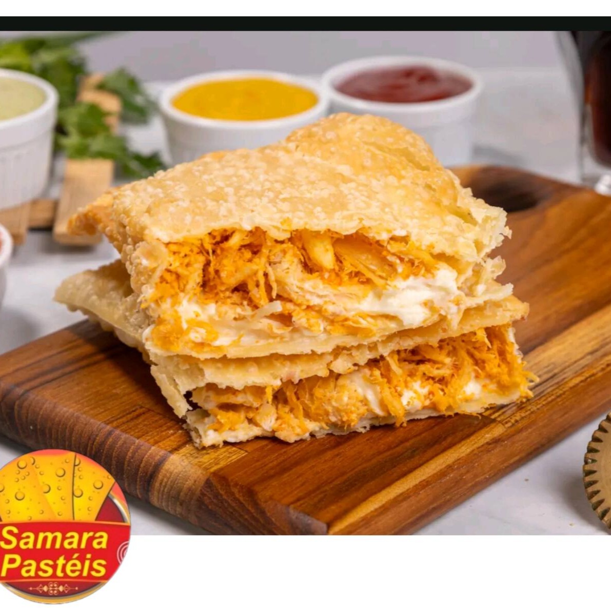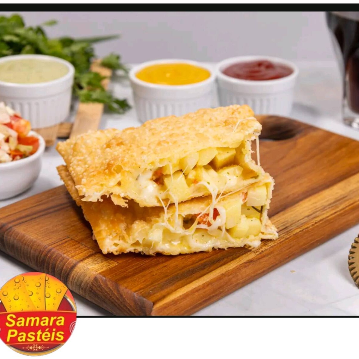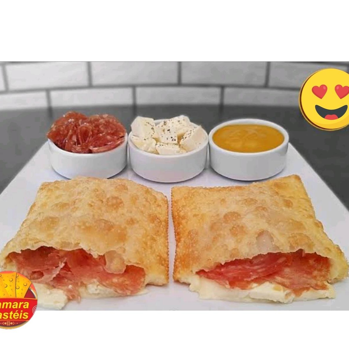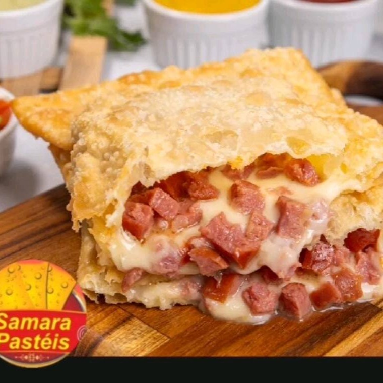 Um delicioso pastel recheado com carne, calabresa, frango, requeijao cremoso skala,mussarela, ovo, tomate e azeitona. Perfeito para quem busca uma explosão de sabores.
