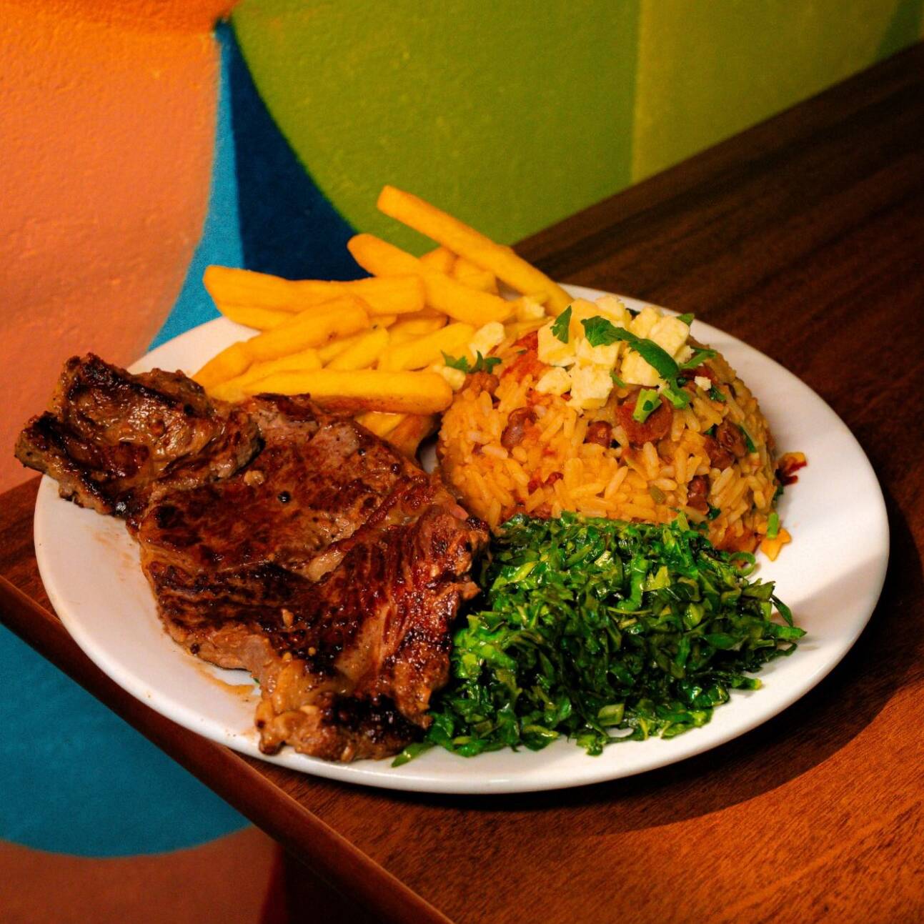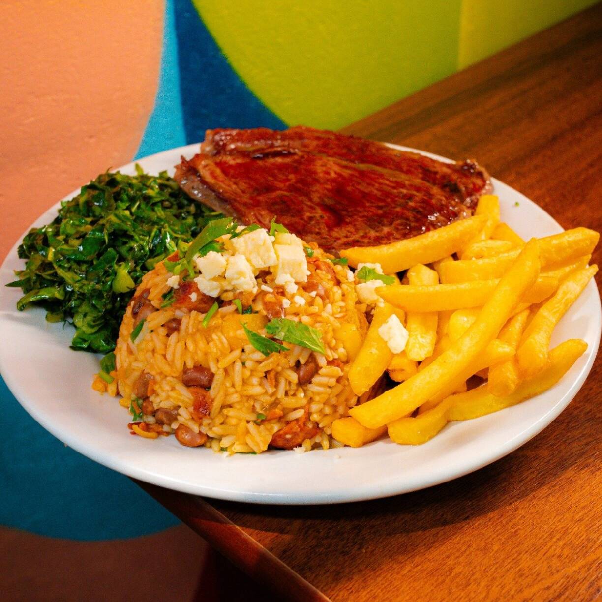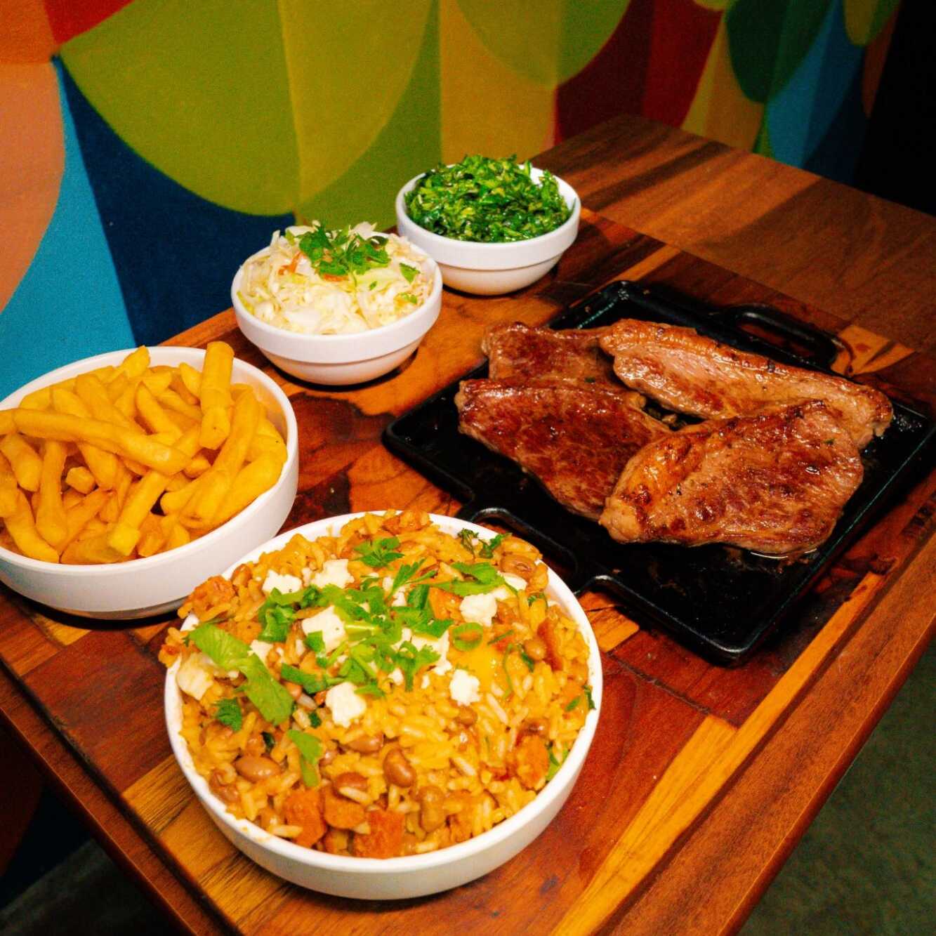 Acompanha contra filé, batata frita,, couve, vinagrete de repolho e queijo coalho. Itens enviados separadamente. Serve 2 pessoas.