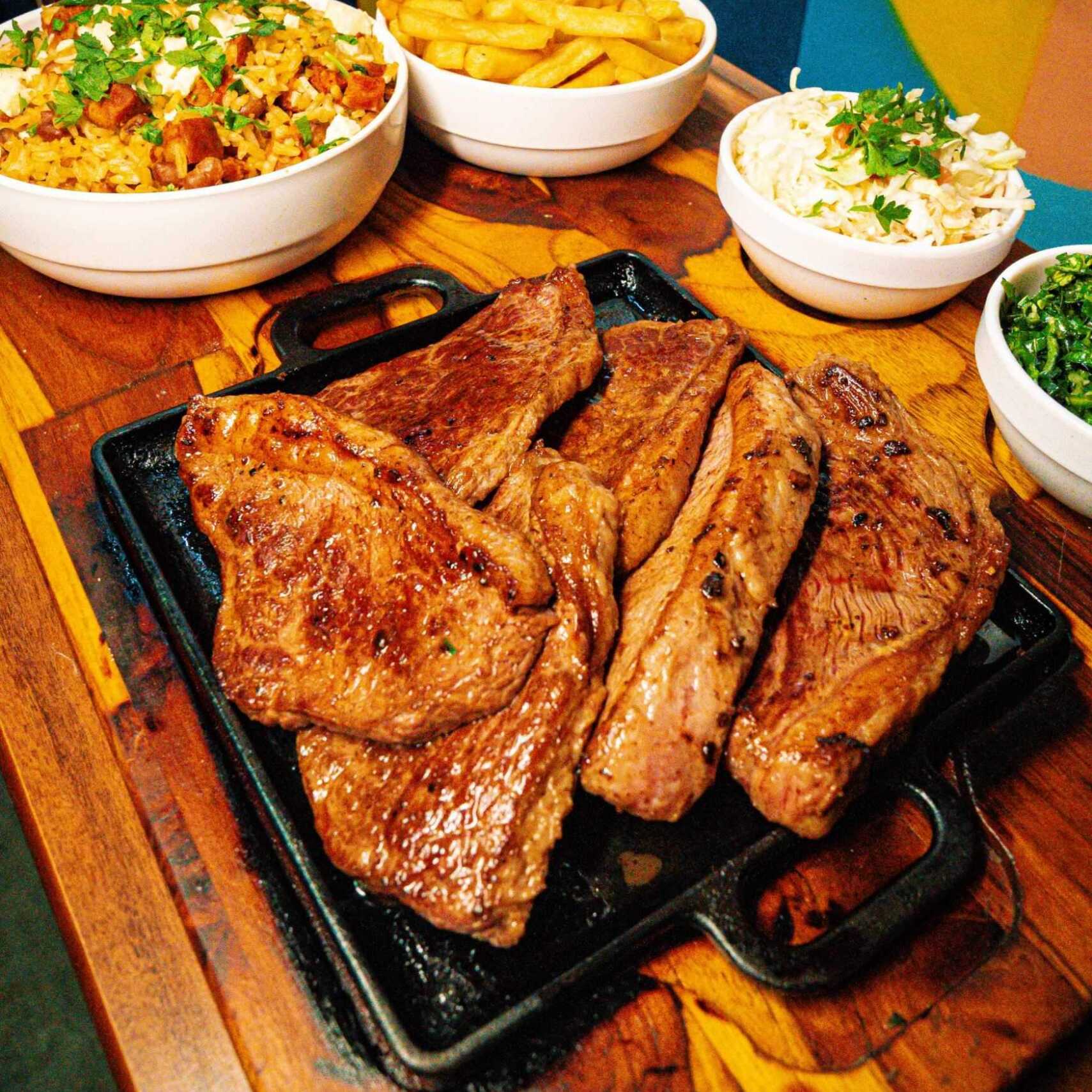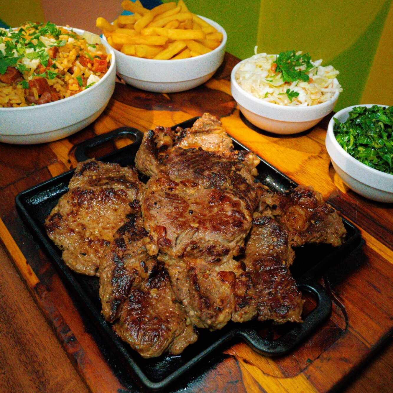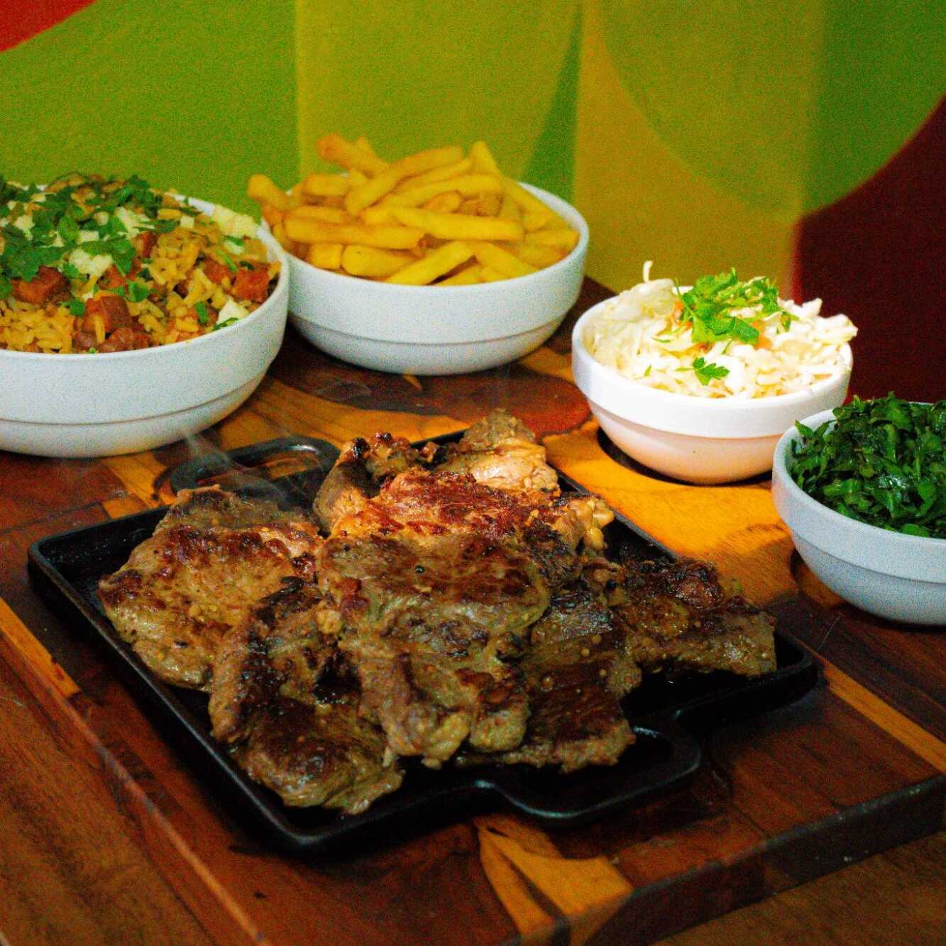 Acompanha contra filé, batata frita,, couve, vinagrete de repolho e queijo coalho. Itens enviados separadamente. Serve 3 pessoas.