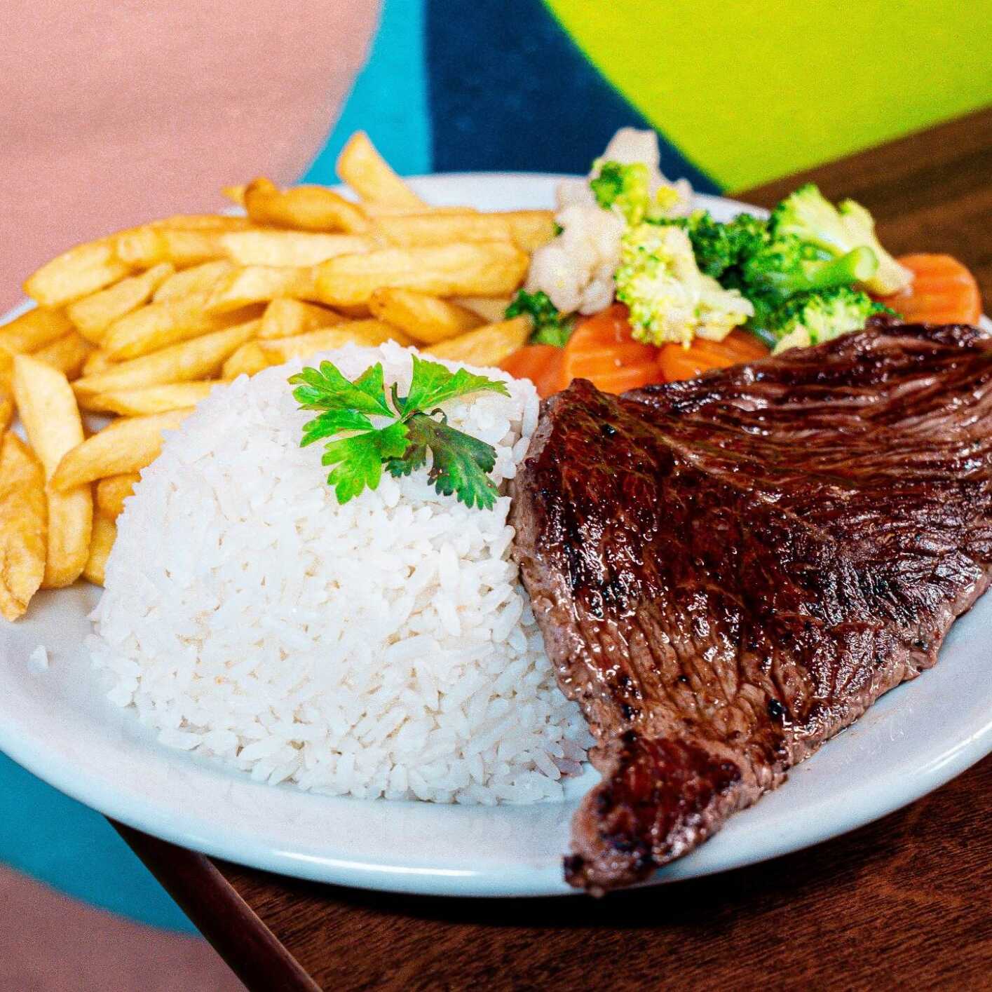 - Acompanha arroz e duas guarnições à sua escolha. Nosso prato é cuidadosamente embalado em uma apresentação executiva, com cada item acondicionado separadamente para preservar aromas, sabores e texturas. Tudo pensado para proporcionar uma experiência gastronômica de excelência no conforto da sua casa. Imagem meramente ilustrativa.
