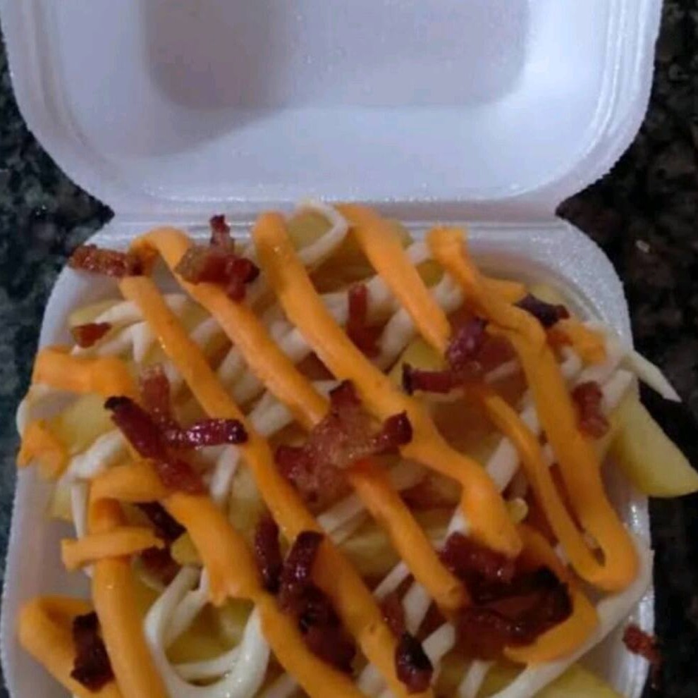 1 Porção batata Pequena cobertas com cheddar e bacon, uma combinação irresistível.acompanha catchup