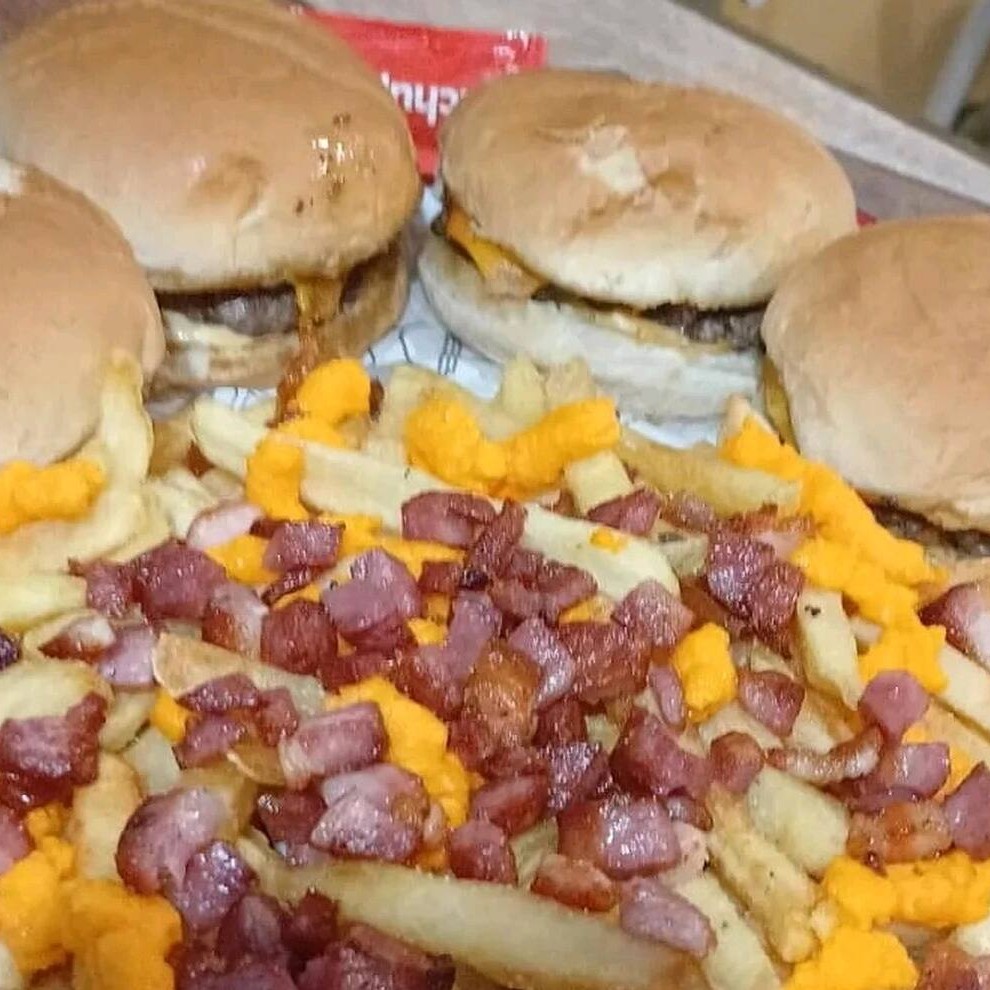 4 lanches artesanal a escolher entre Dam búrguer ou Sam salada e 1 porção de batata com cheddar bacon