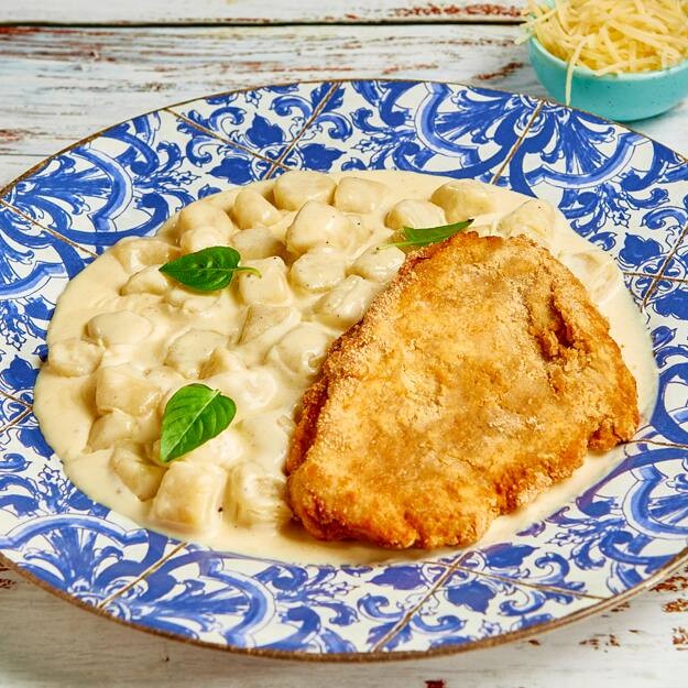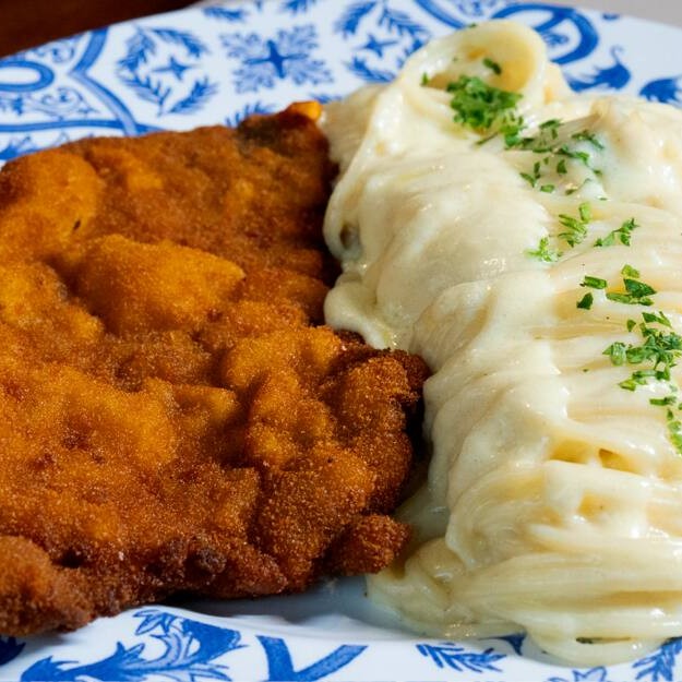 Espaguete ao molho branco cremoso e filé à milanesa crocante pra completar o sabor. O Santo Portuga entrega uma combinação clássica que nunca decepciona!