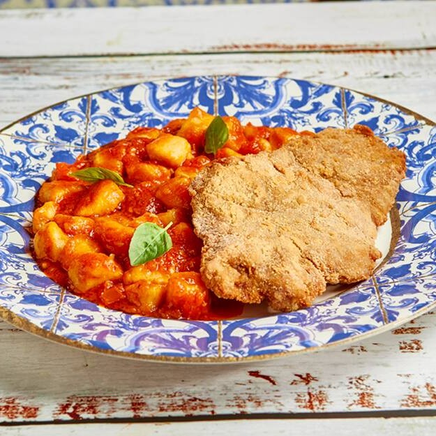 Filé empanado, molho de tomate caseiro, queijo gratinado, arroz branco e batata frita. A Parmegiana do Santo Portuga é aquele clássico que sempre agrada