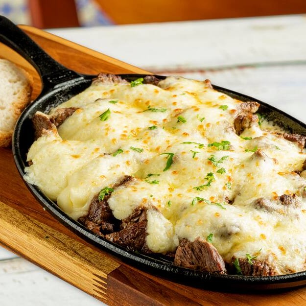Tiras de filé mignon macios cobertos com generosa camada de Catupiry Original, gratinados até formar uma crosta dourada e cremosa. Uma combinação quente, reconfortante e perfeita para compartilhar ou se presentear.