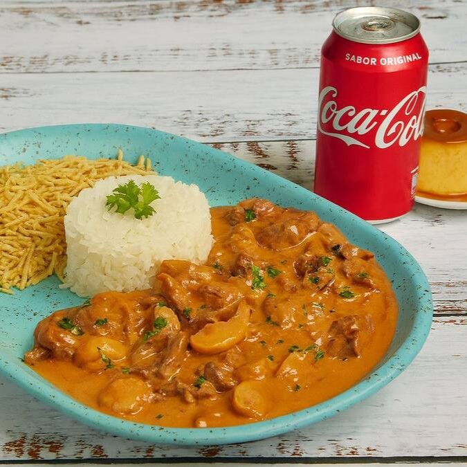 Combo Strogonoff De Frango + Coca Cola + Pudim Executivo Grátis
