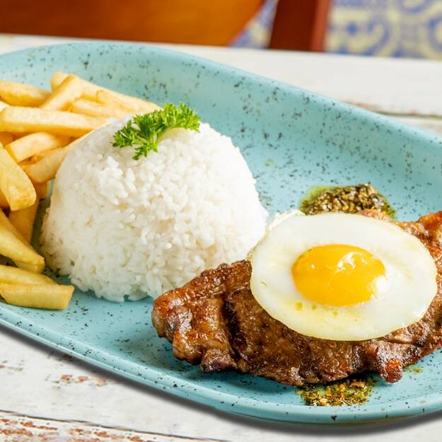 O Chorizo à Cavalo do Santo Portuga é grelhado com maestria e finalizado com um ovo frito no capricho. Vem com arroz e fritas pra acompanhar essa pedida que é puro sabor e personalidade!