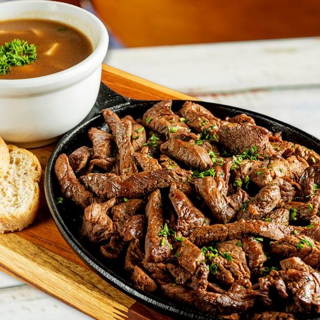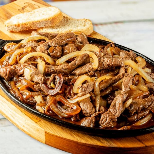 Tiras de filé mignon grelhados com cebola dourada na manteiga, soltando aroma irresistível e sabor caseiro. Servido no estilo petisco, perfeito para compartilhar com uma bebida gelada. Clássico que nunca sai de moda.