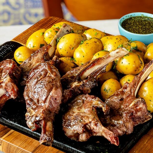 Carré de Cordeiro do Santo Portuga: uma pedida nobre e cheia de sabor! Preparado com cortes selecionados e tempero da casa, é servido no ponto ideal para ressaltar toda a suculência da carne. Acompanha arroz soltinho e salada no estilo família. Disponível nos tamanhos médio (400g) ou grande (800g), peso in natura. Ideal pra quem curte comer bem!