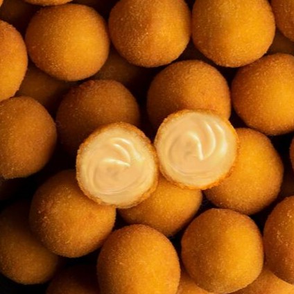 Tamanho: 40 gramas - Pacote 1kg congelado (1Kg) ingredientes: Amido modificado, água, ovo pasteurizado, queijo meia cura, óleo de soja, fécula de mandioca, sal e aromatizantes (leite Ninho e queijo amanteigado).