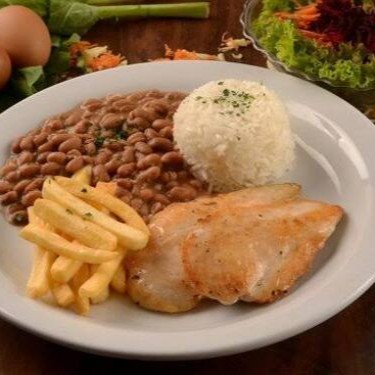 Filé de frango grelhado, suculento e dourado, acompanhado de arroz soltinho, feijão temperado e batata frita com uma coca geladinha. Uma opção deliciosa que faz sucesso todos os dias!