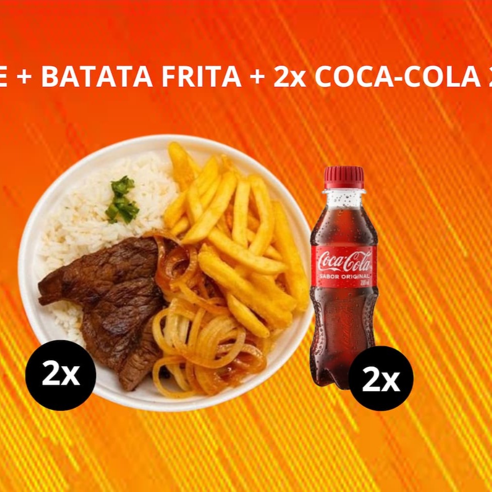 2x Bife + 2x Batata Frita + 2x Coca-cola 200ml