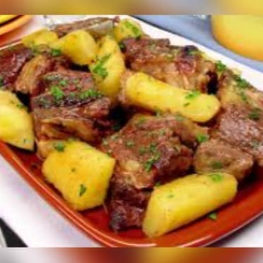 2x Costela cozida com mandioca acompanha arroz e feijao e Coca-Cola bem geladinha.