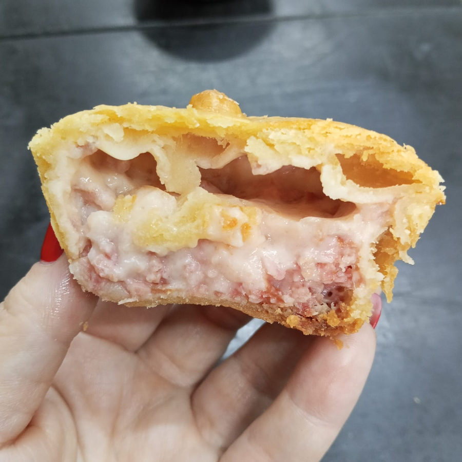 1 unidade de Salgado Assado Sabor: Presunto e Queijo Peso aprox 110g