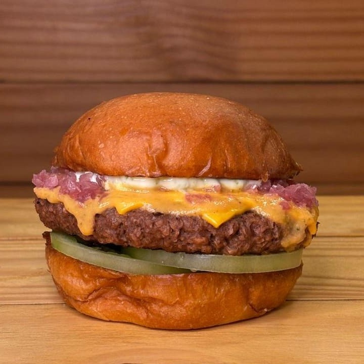 Agora com receita própria da casa: 120g de burguer artesanal feito com proteína de soja, cenoura e especiarias. Vai no pão brioche selado na manteiga, cheddar fatiado, cebola roxa picadinha, tomate verde, molho especial à base de picles e maionese senhora. Leve, saboroso e cheio de personalidade — um vegetariano pensado pra impressionar até carnívoro.