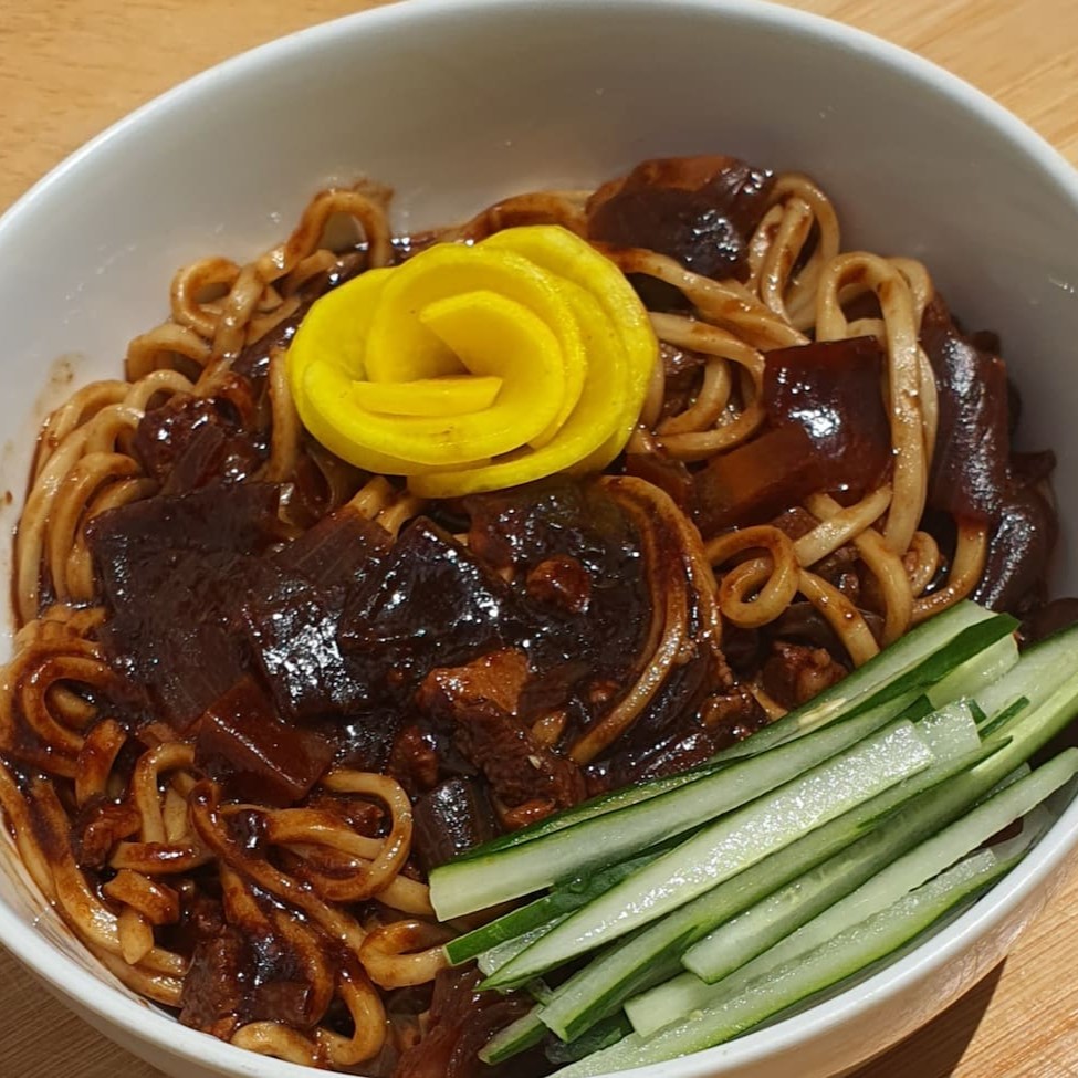 Este prato de origem sino-coreano reúne macarrão artesanal de farinha de trigo, carne de porco e vegetais em cubos envolvidos por um marcante molho negro preparado a base de pasta de soja preta fermentada. O resultado é um sabor autêntico e suave muito apreciado em toda a Coreia. Uma porção individual, porém generosa, acompanhada de um toque de frescor oferecido pela conserva de nabo Takuan.