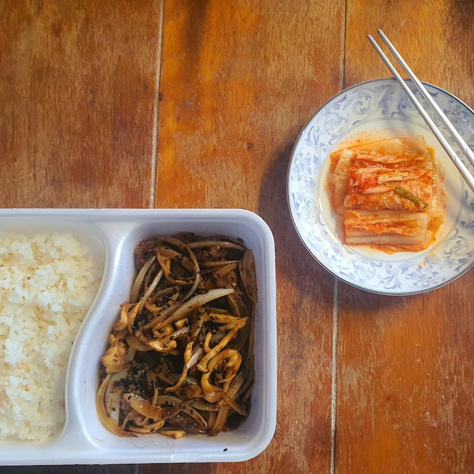 Parceria entre a saborosíssima receita Seok Joung para o tradicional churrasco coreano de carne bovina fatiada e marinada, coberta com cebola e cogumelo shimeji, e uma generosa porção de arroz oriental. Este delicioso combinado é acompanhado de porção de Kimchi, indispensável conserva coreana de acelga apimentada.
