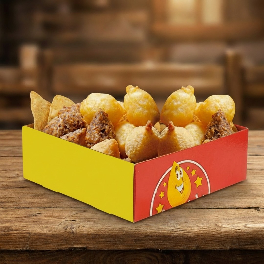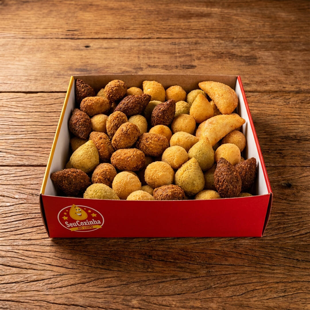 100 Mini Salgados + Batata Frita Completa 800g