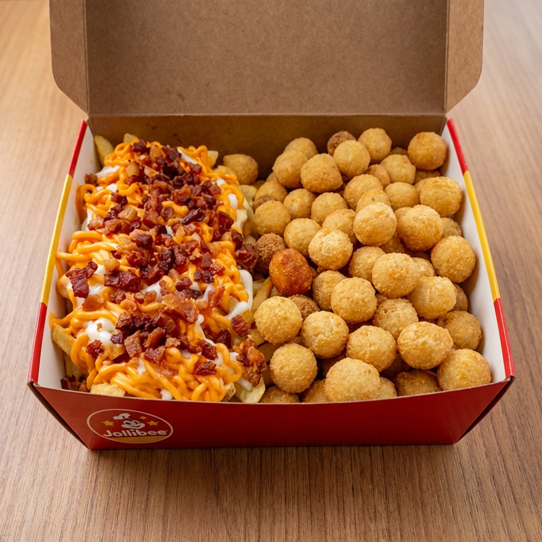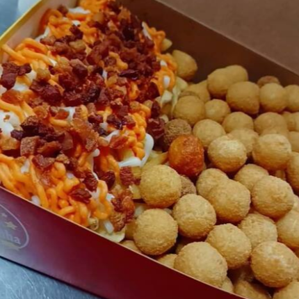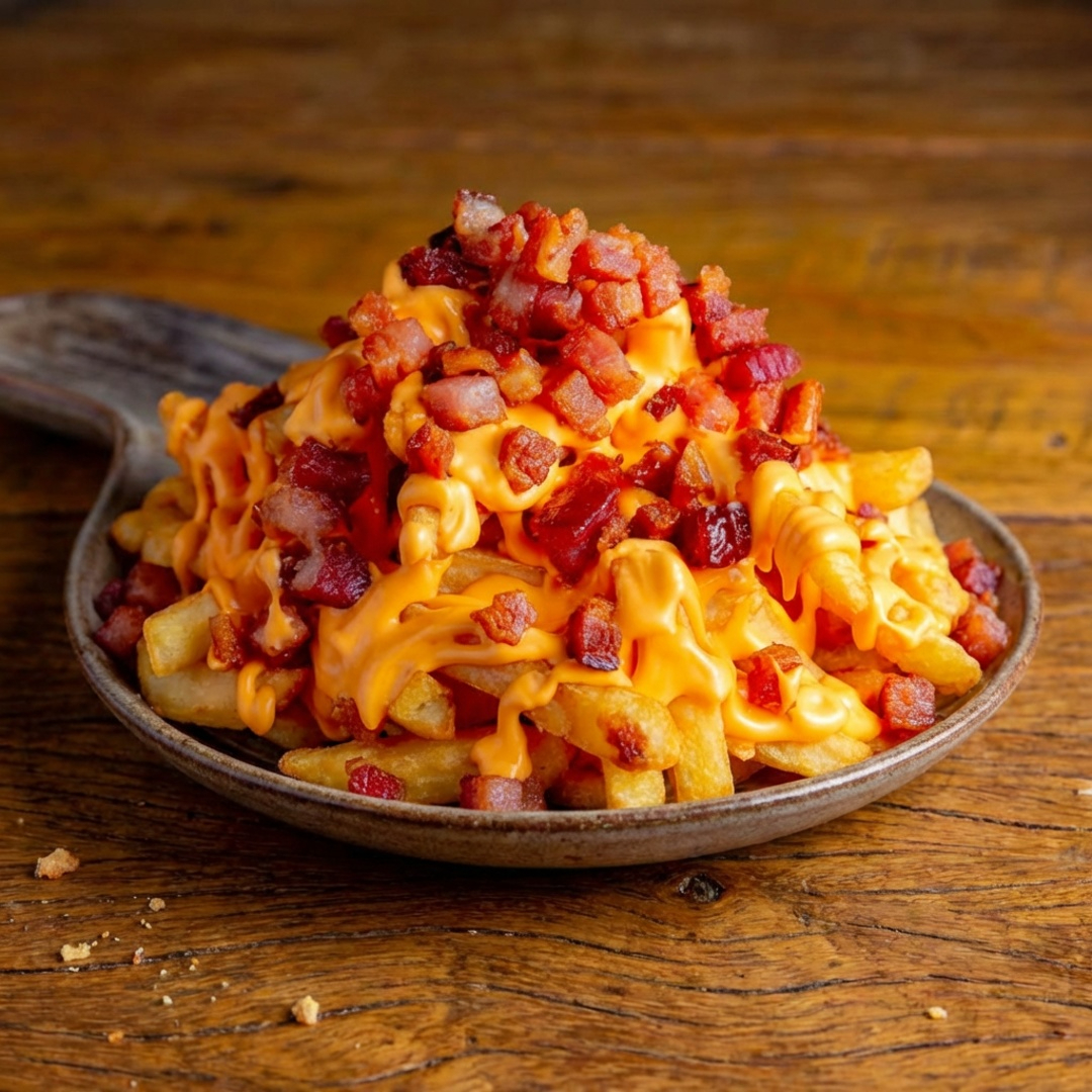 Batata frita completa com cheddar, Bacon e requeijão(tipo Catupiry)