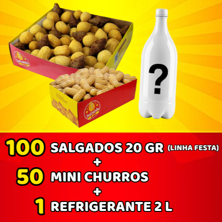 100 Salgados Linha Festa 20gr + 50 Mini Churros + 1 Refri 2l