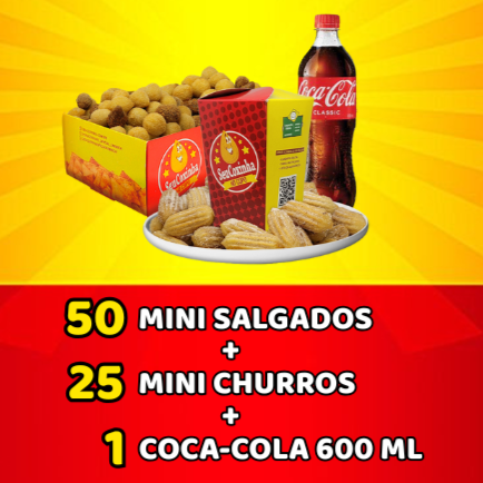 Combo Saldocinho | 50 Mini Salgados 9gr + 25 Mini Churros 9gr + Coca-cola 600ml