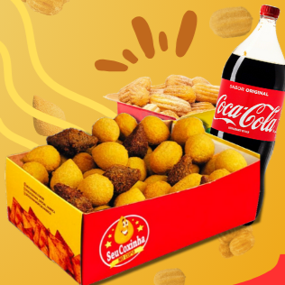 1 Caixa com 50 Mini-Salgados e 1 Refrigerante 600ml