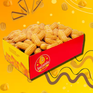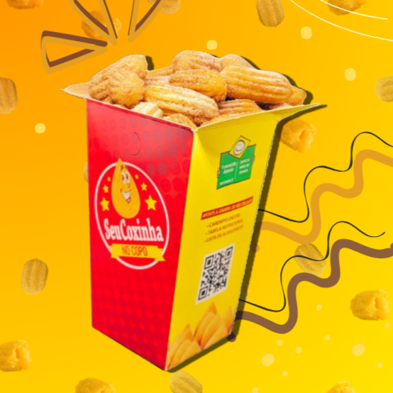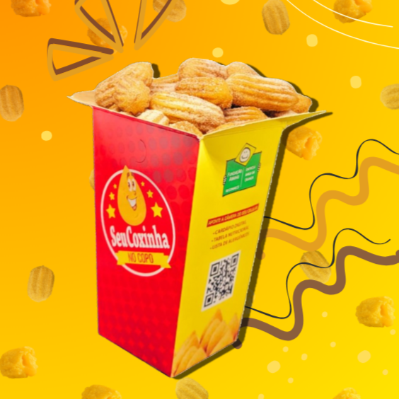 Caixa com 50 Mini-Salgados (9g) e Copo com 13 Mini-Churros (9g)!