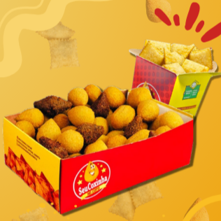 1 Caixa com 100 Mini-Salgados (9g) e 1 Copo com 20 Mini-Pastéis (10g)!