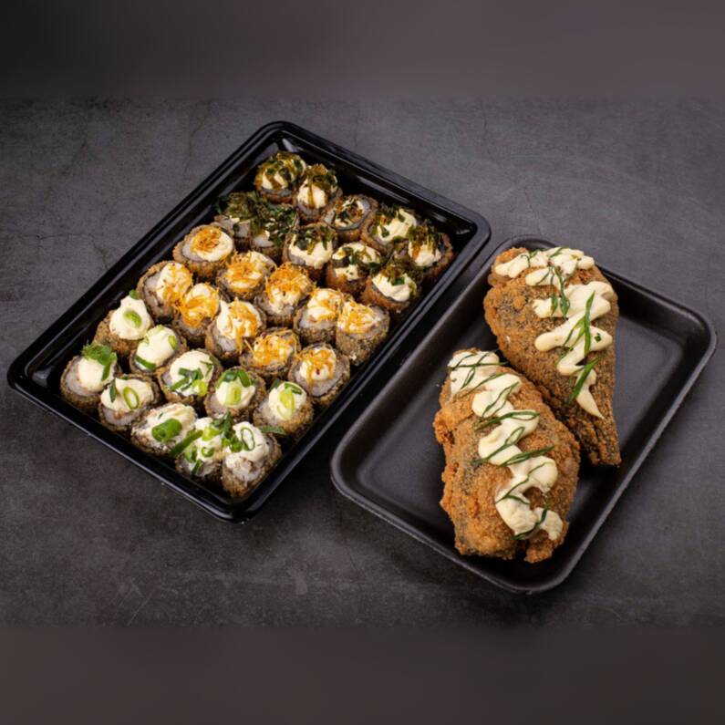 30 Hot Variado(Couve,cebolinha,Batata,cebola crispy) 30 Uramaki skin Variado(Couve,cebolinha,Batata,cebola crispy)