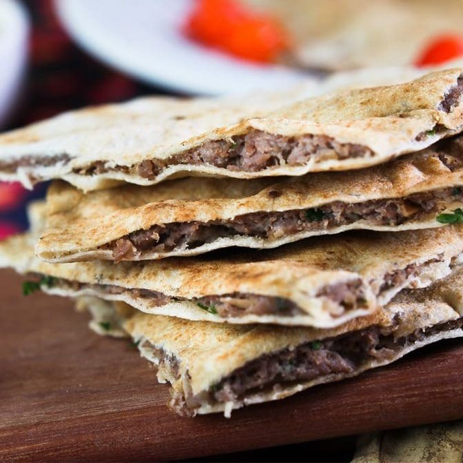 Pão Sírio , carne moída bovina temperada, Assado na chapa também conhecido como Arais, fica muito bom ao adicionar queijo
