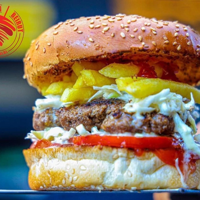 Carne de kafta 120 gramas, coleslaw, fritas, ketchup.